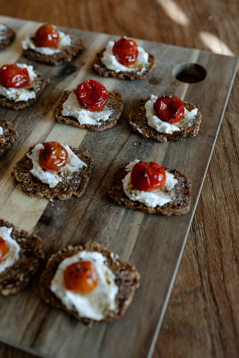 balsamic roasted tomatoes, whipped goat cheese,