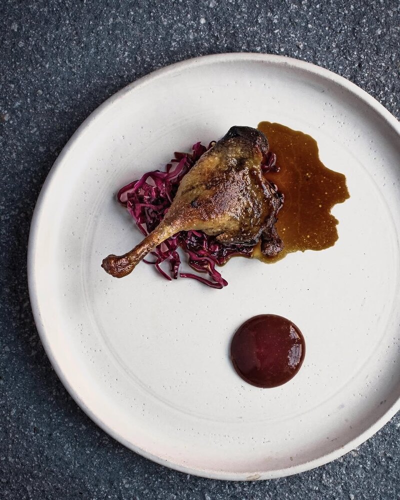 Confit wild duck leg,